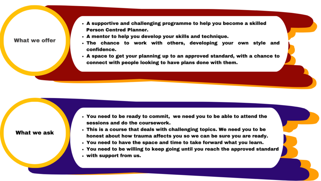 In Control Scotland are offering an opportunity for people with lived and loved experience to become person centred planners for others! This is a supportive and challenging programme to help you become a skilled person-centred planner, creating a space where you can work with a mentor and others to develop your own skills and technique.